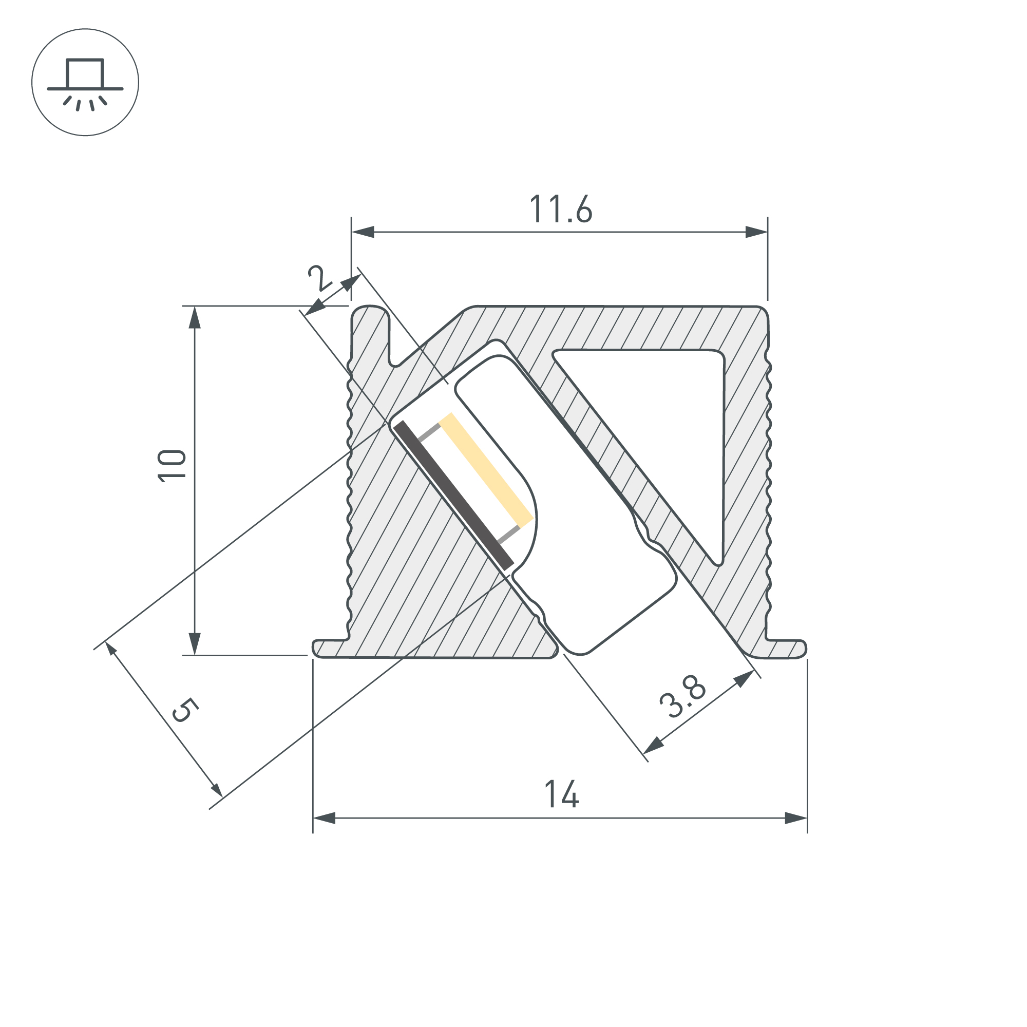 Алюминиевый анодированный профиль для светодиодных лент и линеек с боковым свечением. Цвет - черный. Габаритные размеры (L×W×H): 2000x14x10 мм, паз для установки 11,6 мм. Ширина площадки для ленты 5 мм. Экраны и заглушки приобретаются отдельно. Цена за 1 метр.