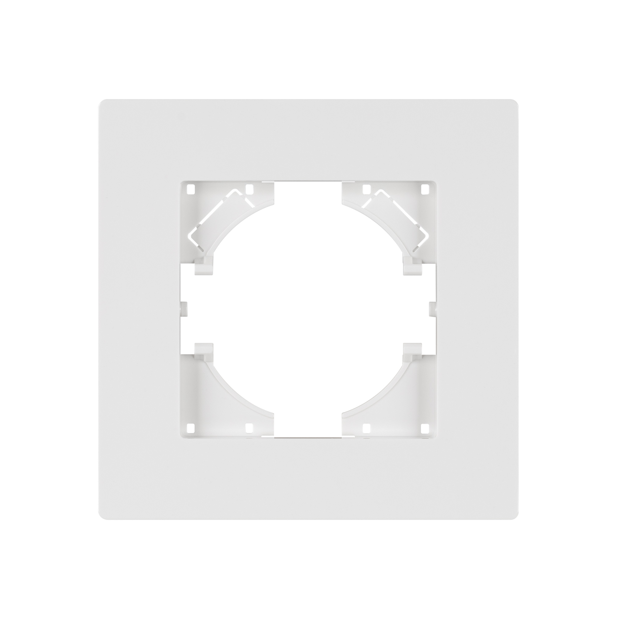 Рамка пластиковая на 1 пост, под встраиваемый механизм. Цвет - белый. Среднего уровня герметичности IP20. Ориентация монтажа - горизонтальная (основным ориентиром служат посадочные выступы для накладки механизма).