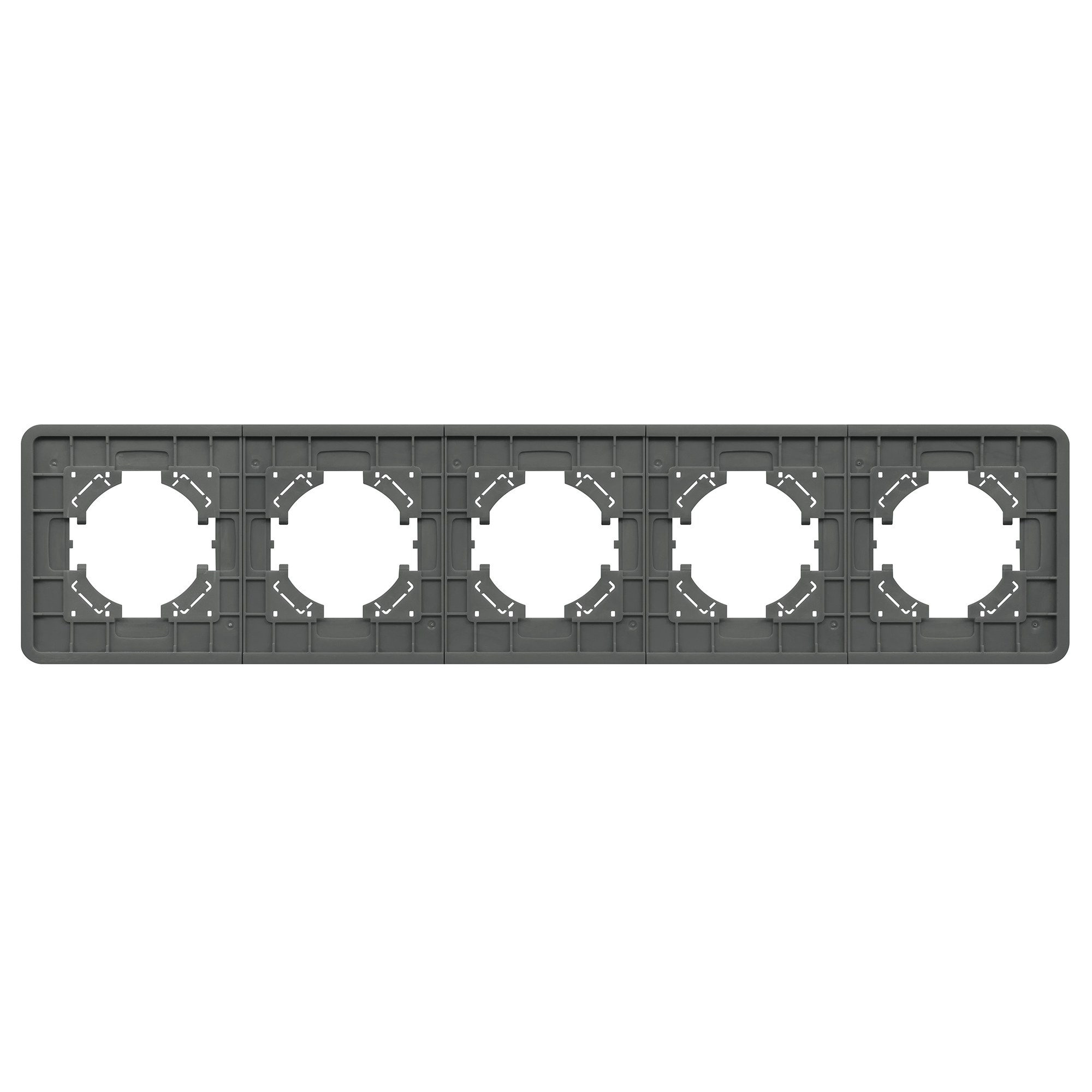 Рамка стеклянная на 5 постов, под встраиваемый механизм. Цвет - серый. Среднего уровня герметичности IP20. Ориентация монтажа - горизонтальная (основным ориентиром служат посадочные выступы для накладки механизма).