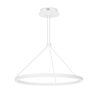Подвесной светильник. Мощность 36 Вт, св. поток 2050 лм, 57 лм/Вт, теплый 3000 K, CRI>90, угол 120°, напряжение питания 230 В. Белый круглый корпус из алюминия, экран силикон, степень защиты IP20. Размер: диаметр 600 мм, высота 25 мм, ширина профиля 25 мм, размер чаши: диаметр 170 мм, высота 40 мм. Монтаж подвесной, длина подвеса 1200мм. Драйвер 33-40 В, 900 мА. Пульсация <5%.